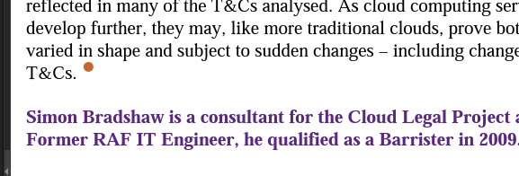 We're attempting to match a print job in ePub. Obviously matching it exactly is not possible but I'm trying to carry as many design features as possible over to the ePub and one of them is at the end of the last paragraph there's a coloured bullet. No matter what I do I can't get the bullet to work in ePub - I can get it to appear, styled with a span, but I can't get it to sit on the line with the 'normal' text and not cause a gap in the paragraph (in ADE). See screenshots attached The bullet in the attached ADE screenshot is styled as; Code: