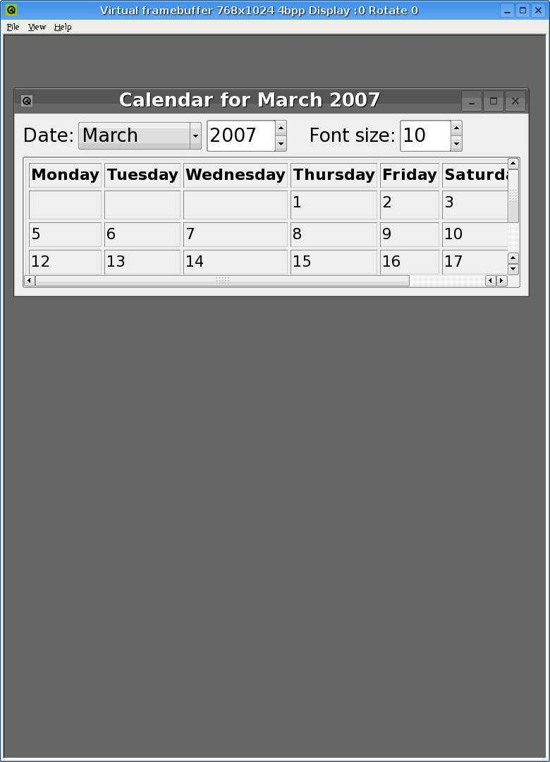 Qtopia is, basically, Qt 4 for embedded devices and instead of running on top of an X server (which on the iLiad is XFBdev, an X server on top of the framebuffer device), Qtopia runs straight on the framebuffer... This means -> faster GUI -> faster startup times And this is not all, I hacked around, well basically, added a ton of ARM features to qemu-arm which is now capable of running ARM compiled (with the 'official' iRex OE gcc compiler) applications ON x86 LINUX ![]() So, is it an emulator? Kinda!!! What you see is: 1) an uname -a of the actual (virtual) machine (i686) 2) in /opt/iliad I have a complete copy of the iliad filesystem and I just ran uname -a again from the command-line (with binfmt_misc you can set a magic sequence so it can identify ARM compiled code and happily runs /usr/bin/qemu-arm which runs the iLiad code unchanged!) 3) I started the Qt4 X11 application qvfb (tweaked for the iliad, just the iliad dimensions and depth (4 bits) as default)... QVfb is a virtual framebuffer for use with Qtopia applications... 4) you see that I run the fontselector example with the runqt script (which just passes a few default parameters so it uses the QVfb framebuffer instead of /dev/fb) and the program shows it's output in the QVfb application. BTW. this and all the other (have tested most of them) examples are actually ARM executables as well.... Where is this leading? 1) An easy to use development environment (Trolltech just released plugins for Eclipse for C++/Java/Qt4/Qtopia/Jambi) without the need to move the programs to the iLiad for testing and debugging the ARM code - For even faster development you can initially develop your program with a native (for me x86_64) compiled QVfb *and* native compiled Qtopia Core 4 + native app you're writing which performs a lot faster since It doesn't need vmware (needed a 2.4.19 x86 kernel for qemu-arm to work), doesn't need qemu-arm and doesn't use the slowness of it all - When the app is ready for debugging you start using the qemu-arm + vmware environment 2) Easy and fast GUI applications for the iLiad. I'm actually planning to replace the whole lot, well, I skip the X server and all that stuff and will write my own, better (well, according to my taste), content-lister. My own document plugins (which should render faster), etc., etc. 3) I hope to add Qt Jambi (should be trivial, but you never know) support so we can also use Java as a development language which automatically has the same look and feel as the C++ applications. Oww and yes, I also have a working JVM... Oww, I almost forgot, the thing with Qtopia is, you can write your own screen driver plugin. I just extended the framebuffer one and actually implemented the dirty rectangle routines which are neatly available in the screen driver interface (which call the iLiad's special update routines) -> no need for patched Xlibs and adding update routines all over the place... Drawbacks? - No more stock X apps, but since I prefer KDE over Gnome and since KDE uses Qt as its base I don't see real problems... (just like porting a gnome app to KDE...) Well, that's it! Aenea PS. And to just piss of Mobipocket even more, one of the document plugins will be secure mobipocket in C++. According to Dutch law no-one can prevent me from writing an app which does the same as theirs (I'm allowed to write a DRM circumvention program, but not distribute it, but a viewer contains no circumvention, if the laywers say it is then the original Mobipocket viewer is also prohibited...) only, hehe, faster startup times and faster rendering and, ohh, did you see that font selector demo?