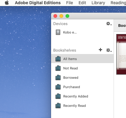 After you tap Connect, do you see the Kobo's accessible storage mounted on your desktop? Can you open that storage to view the files and directories in it? Can you copy files to/from your Kobo? If this works, what do you see when you right click on an ebook in calibre's library view and then hover on Send to Device? With calibre closed and ADE open, connect your Kobo. Does it show under Devices in ADE? Last edited by DNSB; 02-16-2020 at 12:57 AM. Reason: Attached image of Kobo device in ADE on Mac |
