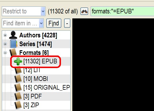 theducks added formats:true to show you only the books that have actual book files inside them. Many folks add empty books to calibre to track their paper editions. This section of the manual describes the search bar and how to use it. |