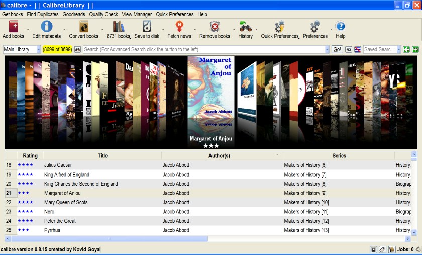 I would really like the option to search my books like I used to in a brick and mortar store, by their covers. Along with the Authors name, the cover is what would mostly attract my attention to the book. I really miss this! Please! Someone fix this! Otherwise Calibre is the only program worth using for ebooks. It does everything else! And it does it perfectly! Thank you. |