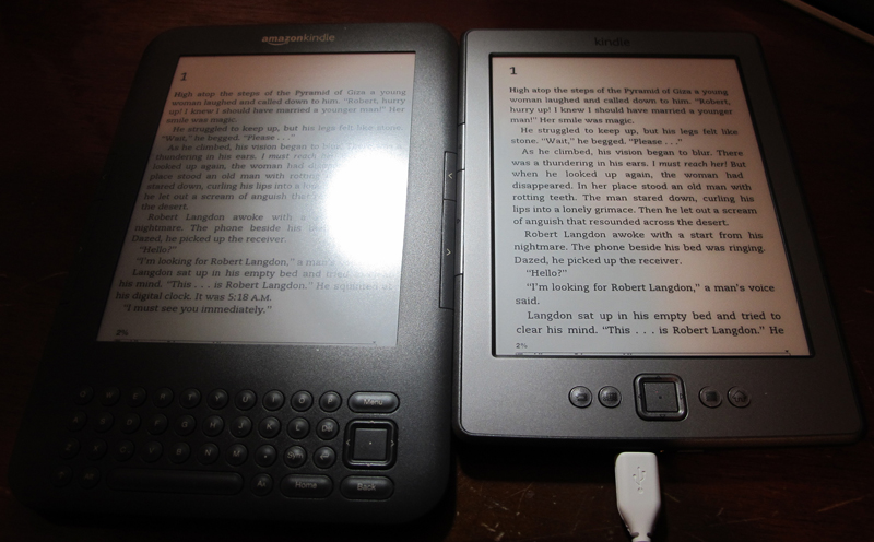 How does the K4 screen compare to the K3? Many of us who own both a K3 and a K4 feel that the K4 screen is better. Just as many seem to think the K3 screen is better. This leads me to conclude that the screens on the K3 and a K4 are most likely too similar to say that one is consistently better than the other. I declare them equals. The fact that they are both using Pearl E Ink screens would seem to justify that analysis. ------------------------------------ TIPS I moved the Tips to their own thread: https://www.mobileread.com/forums/sho...12&postcount=1 ------------------------------------ K4 Menus Here is a posting I made several pages into this thread showing many of the menus. Menus links. ------------------------------------ EDIT: First photos attached. New K4 has much improved screen over K3. K3 seems to reflect more glare and K4 seems to have better contrast. ...... Last edited by jswinden; 10-09-2011 at 06:32 PM. |
