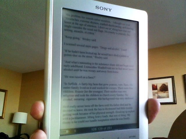 I have a Sony PRS-600, that has worked nicely for a rather long time. But a few days ago, it just froze. I was reading an epub book, and the screen just froze, and has stayed that way since then. Displaying the text. I get no reaction whatsoever whichever button I press. I cannot turn it off. I've tried the Reset button on the bottom, pressing for a minute or more with the pin in the stylus - no reaction. So I thought, let the battery run dry and then it'll shutdown and I can reboot. But still, after 4 days, it keeps showing the same page. The only reaction I get is if I plug in the USB-cable to the computer, the red light goes on, indicating that it charges the battery. But the computer does not react, I mean, it does not identify the reader as a USB device at all, does not even give any error msgs (running Linux, I've checked the syslog - nothing). Any ideas at all what I can do with it (excpet use it as a mousepad....)? Best, Magnus L |