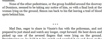 Is there some html code to standardise spacing on all the different platforms? I've just been using either "P" or "BR" tags. I've attached a picture from Kindle PC, on the real Kindle the spacing both above and below the 3 stars is the same. That's what I'm aiming for across all platforms. And is there likely to be variations between different models of real Kindles too? |