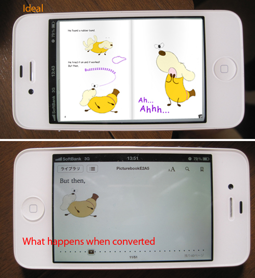 I have a picture book made in indesign that I want to convert to epub. Although, the layout gets messed up when I convert the indesign-exported pdf using Calibre. I'm not exactly sure how to fix this, but I assume this can be solved if the pdf-text can be recognized as an image (am I correct?). Please look at my first attachment for example. My ideal is the layout on the right, but this messes up when you convert the file (what you see on the left). In any case, should anyone know the solution for this, please guide me to the right direction. Also, is there a way to make 2 pages display on one screen for iphone or ipad? (please look at the second image I attached). Thanks a million in advance! Regards, Nishi |