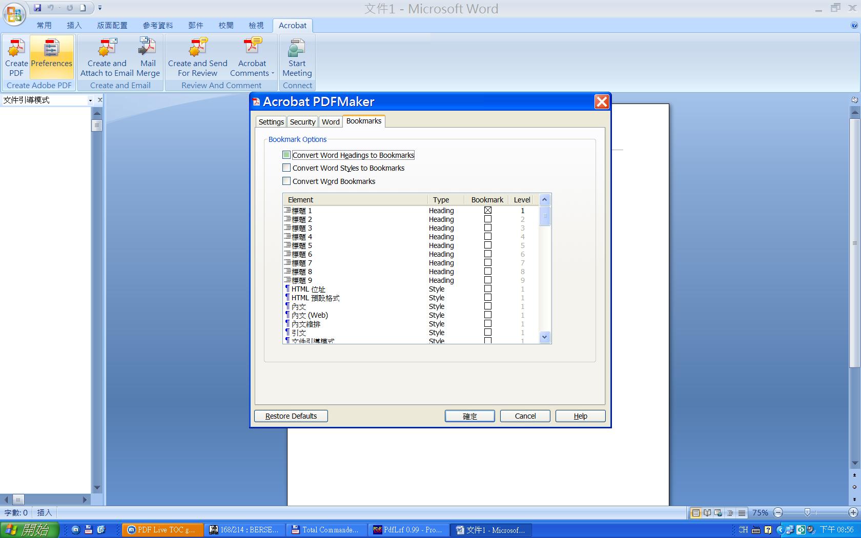 PDF Live TOC generated from MS Word 2007