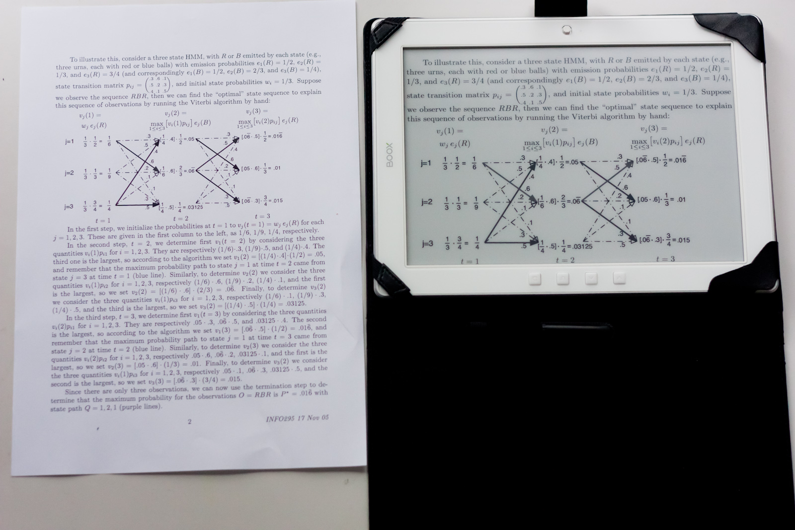 Can anybody try to print a page of a PDF and then take a picture of the printed page side by side with M92 showing the same page (let's say with the margins cut when on ereder)