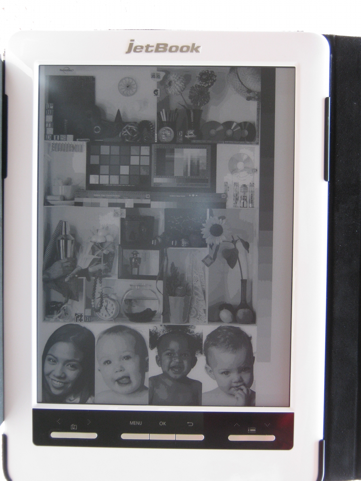 Thanks for the pictures. The colors are OK. I was wondering if you could print one of the attached images The trick is to print on paper something that could cover the entire page and to see how much that gets rescaled on Jetbook (that should be for both B&W and color because by my understanding the ereader has different resolutions for the two modes) In you case you seemed to have matched the size of the two. Looking at your pictures I would say that I can expect a full page color image to be reascaled seriously since there is around 25% of the paper left blank in order to match the size of the two renderings |