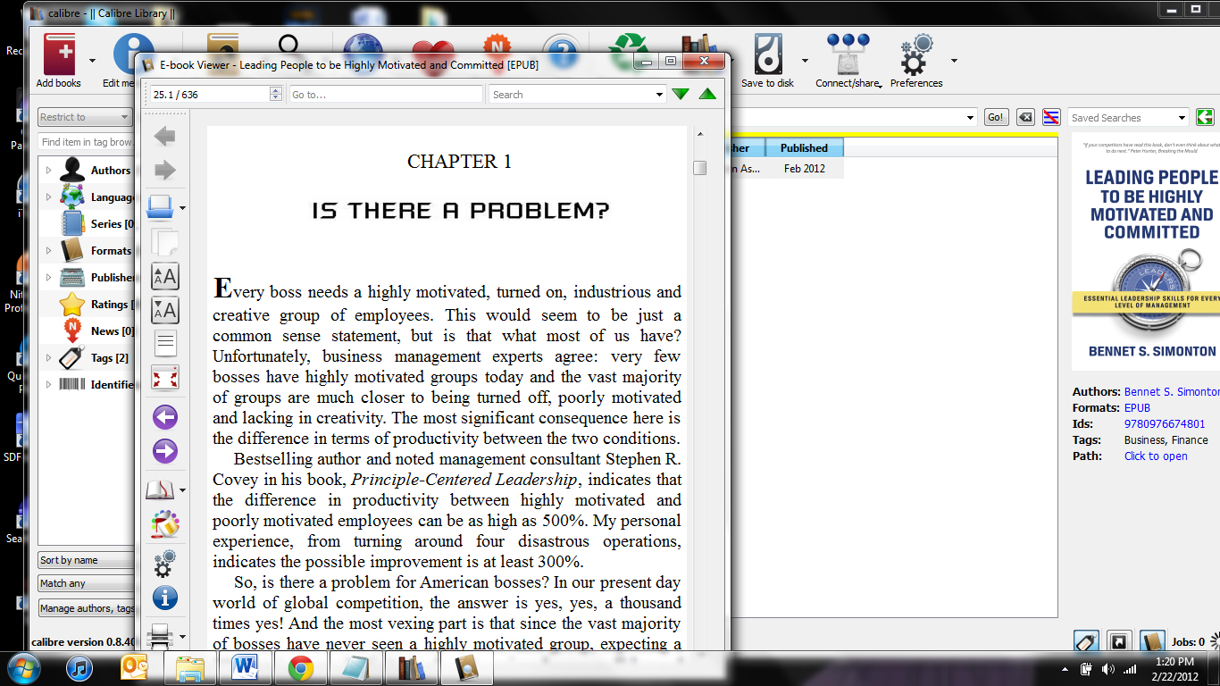 The issue I'm having is when I go into Calibre to covert the edited version into .mobi format, the generated mobi file is missing all of my spacing. If you take a look at the error, I have the mobi view in the kindle for windows. If you take a look at the epub-shot, you can see that the spacing is working perfectly in the epub. I don't know why it fails during the conversion. Can someone help? At this point, I'm getting very frustrated and at this point, I feel as if I have to edit the epub in html format from Calibre, copy the edits into the old version and rebuild the epub. Is there something wrong with my stylesheet? Can someone help me? |