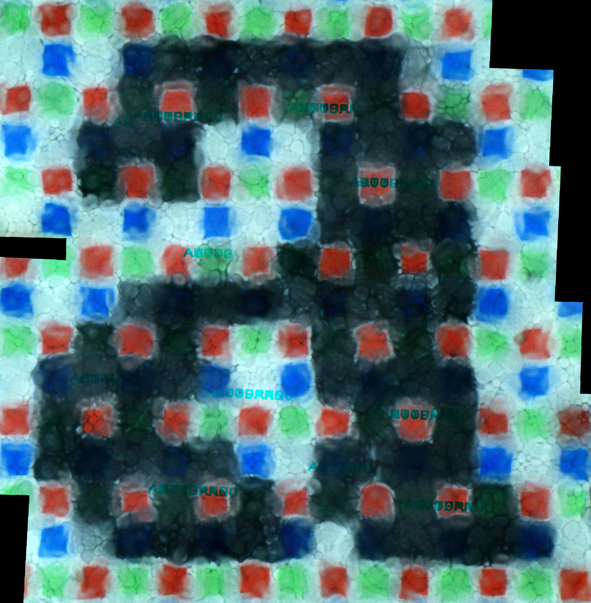 i wonder if a pentile arrangement of the filter would be better than the grid the are using?