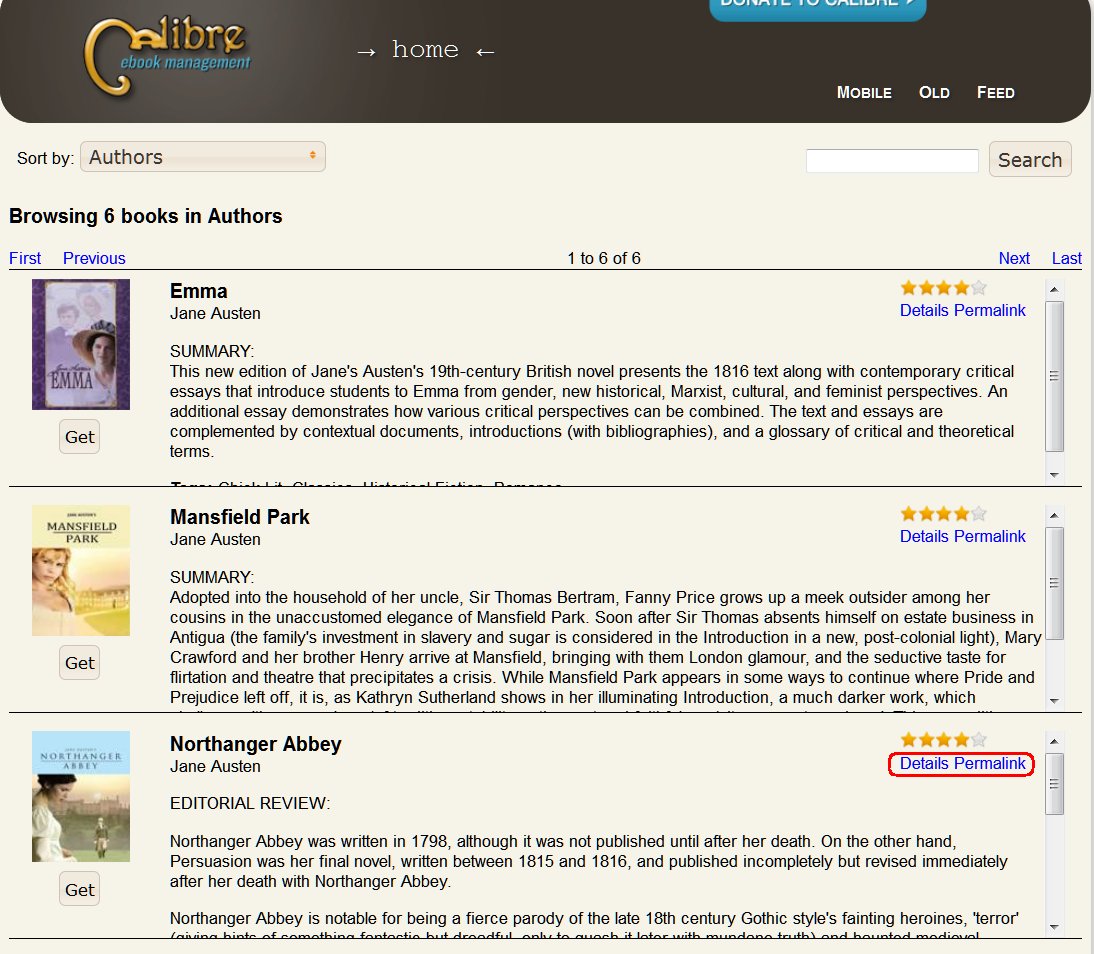 I'm curious, what device are you viewing it on? Certainly the web interface could use some sprucing up but when I go to my content server and go to an author's page I get what you see in the first image. If I then click on the Details link I get what is seen in image two. If I click on the Permalink instead of Details I get image three. From my perspective a very functional interface and relatively easy to see. |