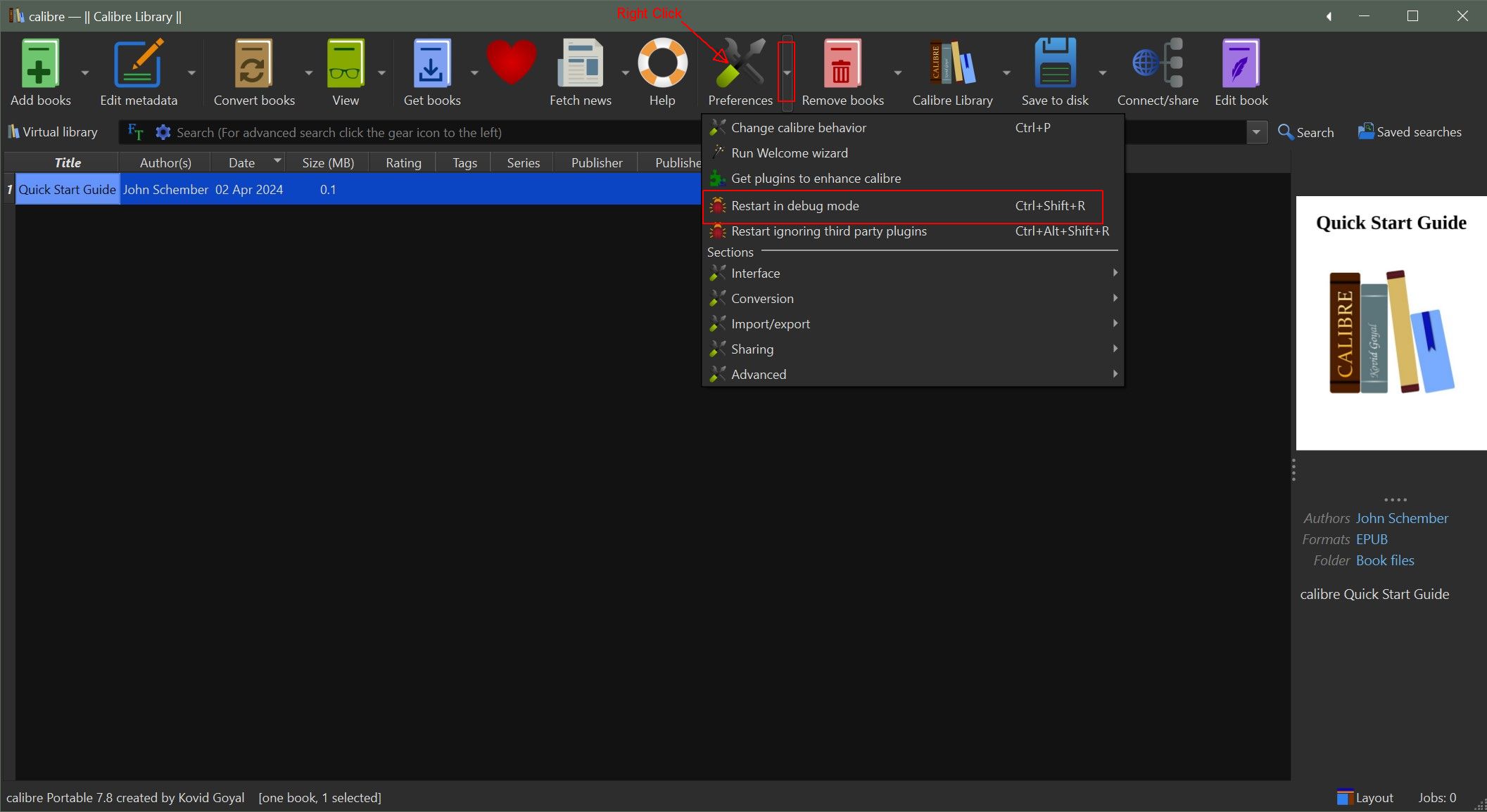 When i launch caliblre-debug.exe with your bat file it points to another library C:\Users\John\Calibre Library instead of one in C:\Program Files x86\Calibre\Calibre Library