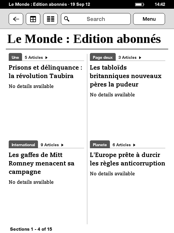 I've noticed that some recipes do this automatically and others don't, but I can't seem to figure out how to trigger this behaviour for the ones that don't (Le Monde screenshot attached). I personally find the 'details' very useful when deciding whether to read an article or not. Generally, the 'details' are just the first words of the article body. Any help greatly appreciated. Last edited by veezh; 09-21-2012 at 09:57 AM. |