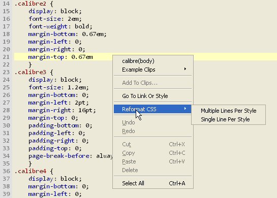 It appears a great new feature got overlooked ![]() With a Stylesheet in view, Right click. You are now given options to Reformat your CSS 2 ways: 1 Multiple Lines (shown) 2 On Single Line |