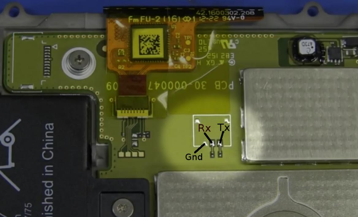 Does "TX" mean the Output of the serial port or the solder joint that has to be connected to the TX-Cable of my TTL-adapter? In the first case I would connect the pin on the Kindle that is titled as "TX" to the RX-Cable of my USB-adapter. Kindles Output to the Computers Input and vice versa... |