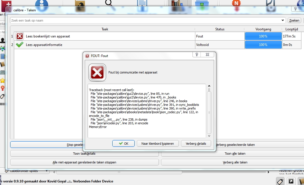 I try to connect to a folder on an external disk, but that never works. Sometimes I get a device error, sometimes Calibre just crashes with a runtime error, abnormal program termination. Moved the folder to my internal disk, without any imporvement. I have not been able to connect to a folder so far. Help... |