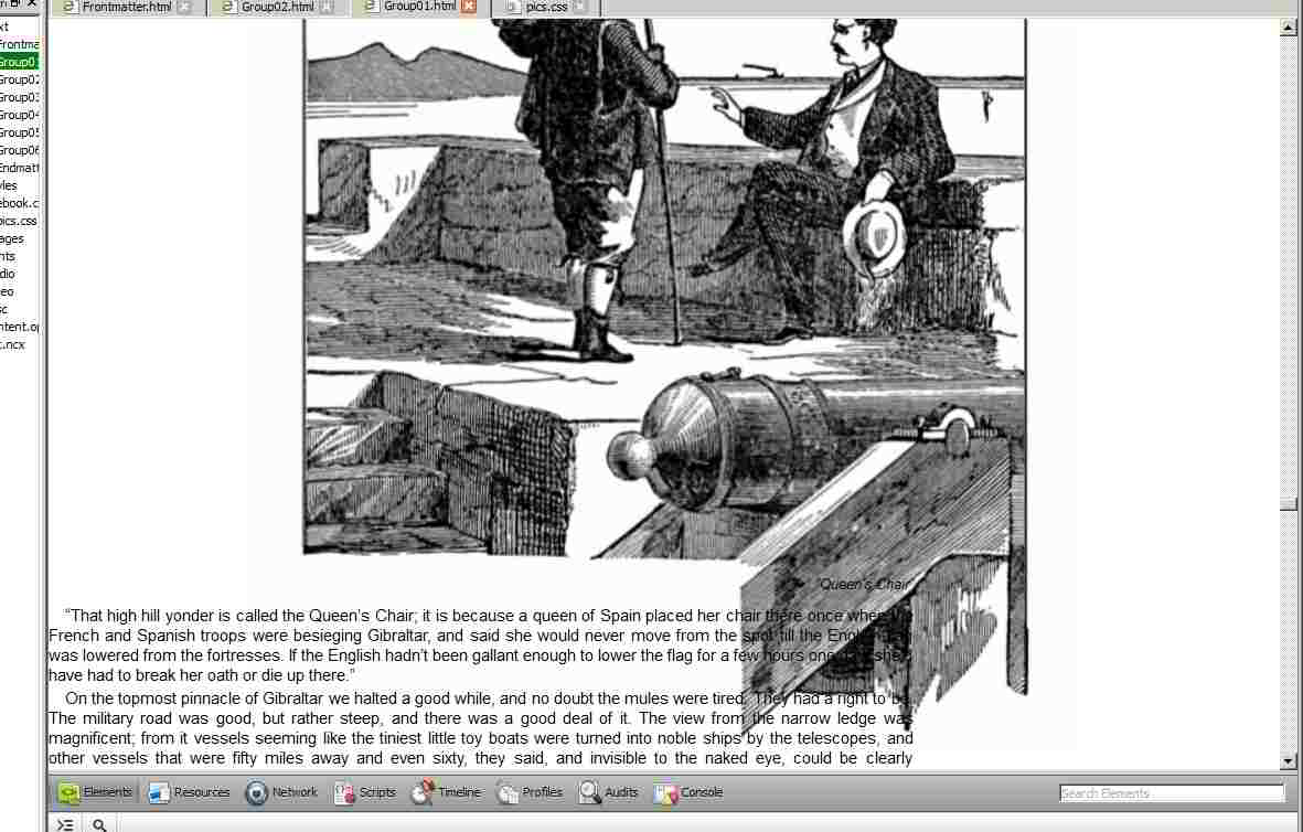 My image is an inverted L-shape, and text wraps inside the L beside the narrow leg, but no text-flow allowed next to the horizontal wide leg. I want to center the image on the screen, and it works well for a narrow screen. But in a very wide window, such as a full-screen browsing window, the text overflows the image. So to keep the text from overflowing the upscaled image, I have to let the image sit left- or right-aligned. Screenshots are from Sigil. I couldn't check with ADE, when I widen the screen I get two columns, or the image fills the screen and the text falls off onto the next page. So, is there any answer to this quandry, or should I just let the images sit where they are comfortable? Here is the CSS I'm using Code: