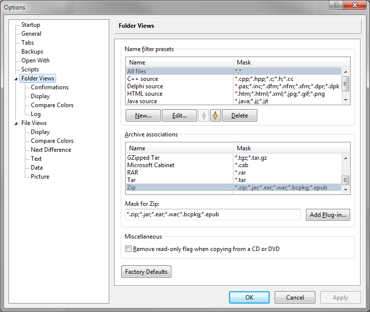You'll need to run CSDiff once and change the Analyze option to Folder. You'll also need to enable the two check boxes. (Once you're done, click OK and close the app.)