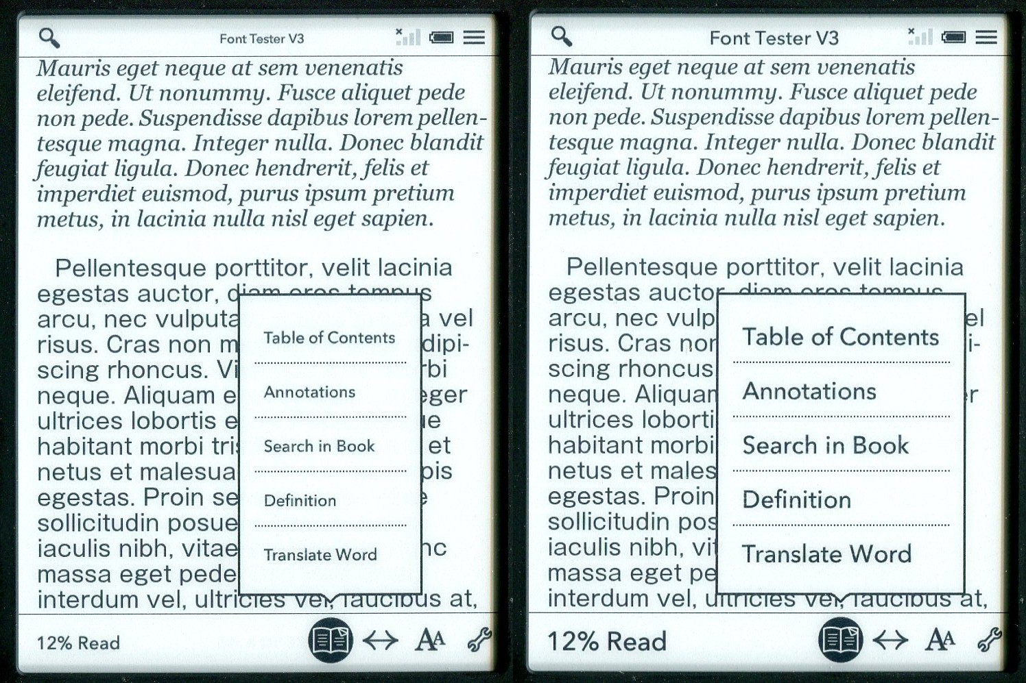 USE THIS PACKAGE AT YOUR OWN RISK! Make sure your reader is on FW 2.8.1[a] (9a63806202)! I add some pictures so that you can see advantages and disadvantages (look at the long title in the Books list). Last edited by tshering; 10-11-2013 at 09:40 AM. |