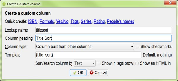 If you are looking to create a unique sort order for your library you will have to do as DoctorOhh has suggested, which is to create a custom column or derived custom column to store the data. What theducks was talking about might not have been clear. You mentioned columns title and title_sort - which already exist in the calibre database and are reserved column names. So your request to create a "title sort" looks like you want to simply change the way calibre handles sorting. To change the existing title_sort function there are a few tweaks under Preferences>Tweaks that can be changed. This includes whether or not Articles of Speech (A, The, An, etc) appearing at the beginning of a book title is used or ignored for the purpose of displaying books in order in the main book view. Another tweak allows you to specify user language and that language's equivalents to the Articles of Speach. Or you can add completely new words to the Articles listing. There are others as well. Perhaps we've misunderstood what you wanted to accomplish with your request to add a "title sort"? In that case, post a few of the problem books. Give us the correct title and the incorrect title so that we can see what is wrong and recommend how it can be fixed. Last edited by Sabardeyn; 09-23-2013 at 04:18 AM. |