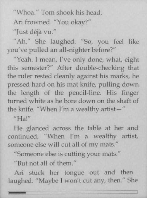 I have to agree. Looks quite a bit better. Also makes it more readable. Plus I like that you've gone from 17 lines to 21 lines. Less pages per book and less page turns equals more battery life.