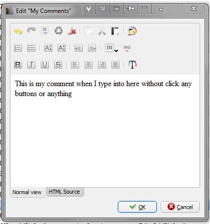 In doing that screen capture I discovered that if click into HTML View and then click into Normal View it comes back as the default font - if I include My Comments column in Book Details it displays in the default (MS Dlg 2) font I normally paste the following into HTML Source panel of the My Comments column before I start to type Code:
