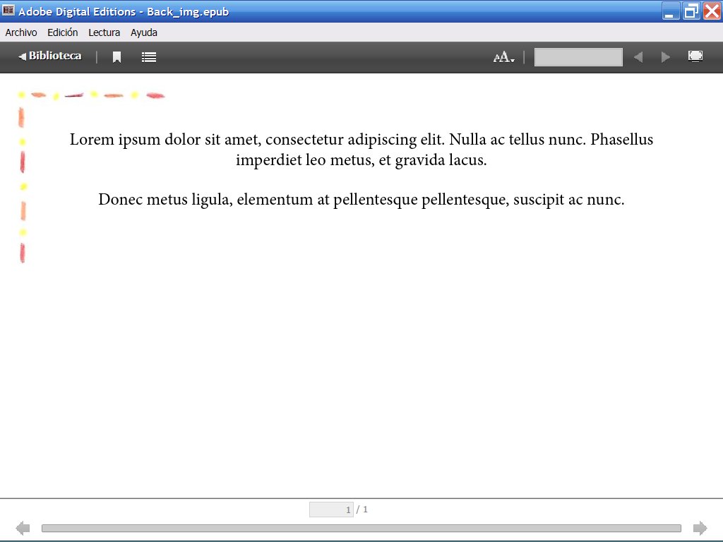 I attach the respective .ePubRegards Rubén PS: In my example I'm using as background a .png image of 222 x 259px. Of course, you'll use your proper image with the size of your convenience since the property "background-size: contain;" will do almost all the work