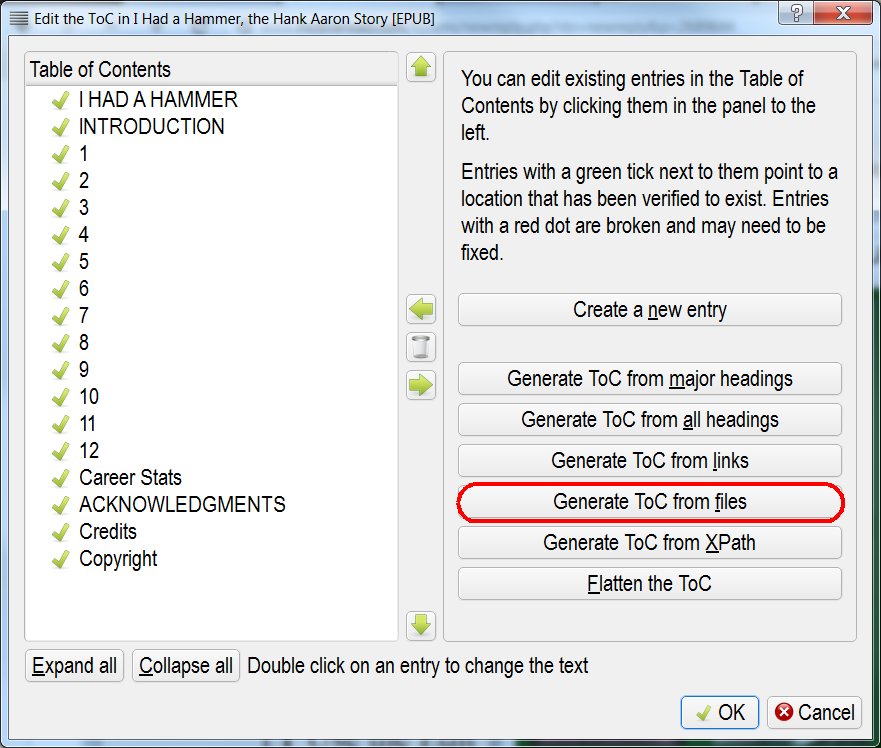 I have an ePub where each physical XHTML file corresponds roughly to a chapter. The book has no toc Is there a way to create a toc based simply on the files?