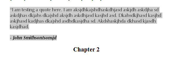 I wasn't sure where to place this post, so I apologize if this is the wrong subforum. I am trying to create an epub from an ODT file for this essay I wrote. I have it looking perfect in LibreOffice however no matter what settings I try, the epub always "breaks up" the nice quote box. Let me show you. (Please see attached images) Is there any way to keep the gray shaded background consistent and looking like it did in LibreOffice, but as an epub? I've tried Jutoh and Sigil, both render a broken box. I am comfortable with editing CSS and HTML, so if you know of a workaround fix, please let me know! Much appreciated! |