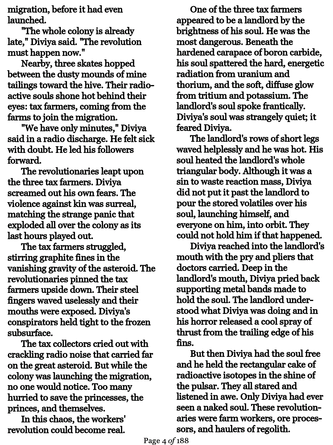 For my 8" Icarus8 I adjust all my books for 2 columns; this gives my more words per screen-page than in a single column text.