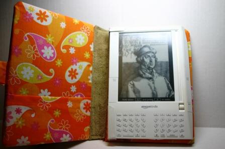 While thousands have taken the razor and Velcro approach to the original case, the only objective reached is that the device no longer falls out. It remains uncomfortable to hold in a natural position while reading. Others have gravitated to the leather "not named" commercial case with pockets to hold stuff. The fact remains that although attractive and business like, it dosen't feel like a book, the device is losely supported by a flap, and there is no practical reason to store business cards in your book (extra pockets). I took a different approach in making my own, that of holding a book comfortably in any position. I suggest the primary objective in hundreds of thousands of these devices purchased was to enhance the reading experience with limitless access to reading material. When considering an aftermarket cover, sleeve, or pouch reflect on why you purchased your Kindle. I predict that the market will eventually be flooded with expensive designer models that perfectly match your briefcase or shoes yet remain unnatural to hold and read. Ask questions and try before you buy, don't let fashion override functionality. We have evolved to this point from stone tablets, papyrus, Microsoft Reader and become conditioned to comfortably holding a book in any position while reading. I've attached a few pictures of covers I have either made for myself or friends simply to stimulate thought. I hope to eventually post instructions for self made covers on my web site. Enjoy. |