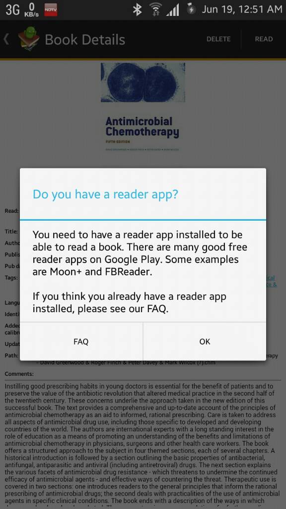 I installed calibre companion to read all my chm books which I have organized on calibre for pc. I have lots of chm books. The latest release (22 may) of cc advertises that it supports moon+ reader to read chm files. I transferred all my chm and pdf books to my android phone without converting using connect feature on calibre. Cc opens pdf files without any issues (it gives a list of apps installed on my phone to open them). But when I attempt to open chm files directly from cc it shows a dialogue saying that it needs moon+ installed and if already installed to have a look at faq. That faq is of no use in this regard. I already have moon+ reader pro installed on my phone and using it since long. I also use "CHM Viewer ACHM" to open chm files. This opens chm files directly from android file manager unlike moon+ which needs us to browse to the file through the app to open it. Please help me open chm files directly from cc either using moon+ or CHM viewer ACHM. I have mailed the developers several times regarding this but got no response from them. |