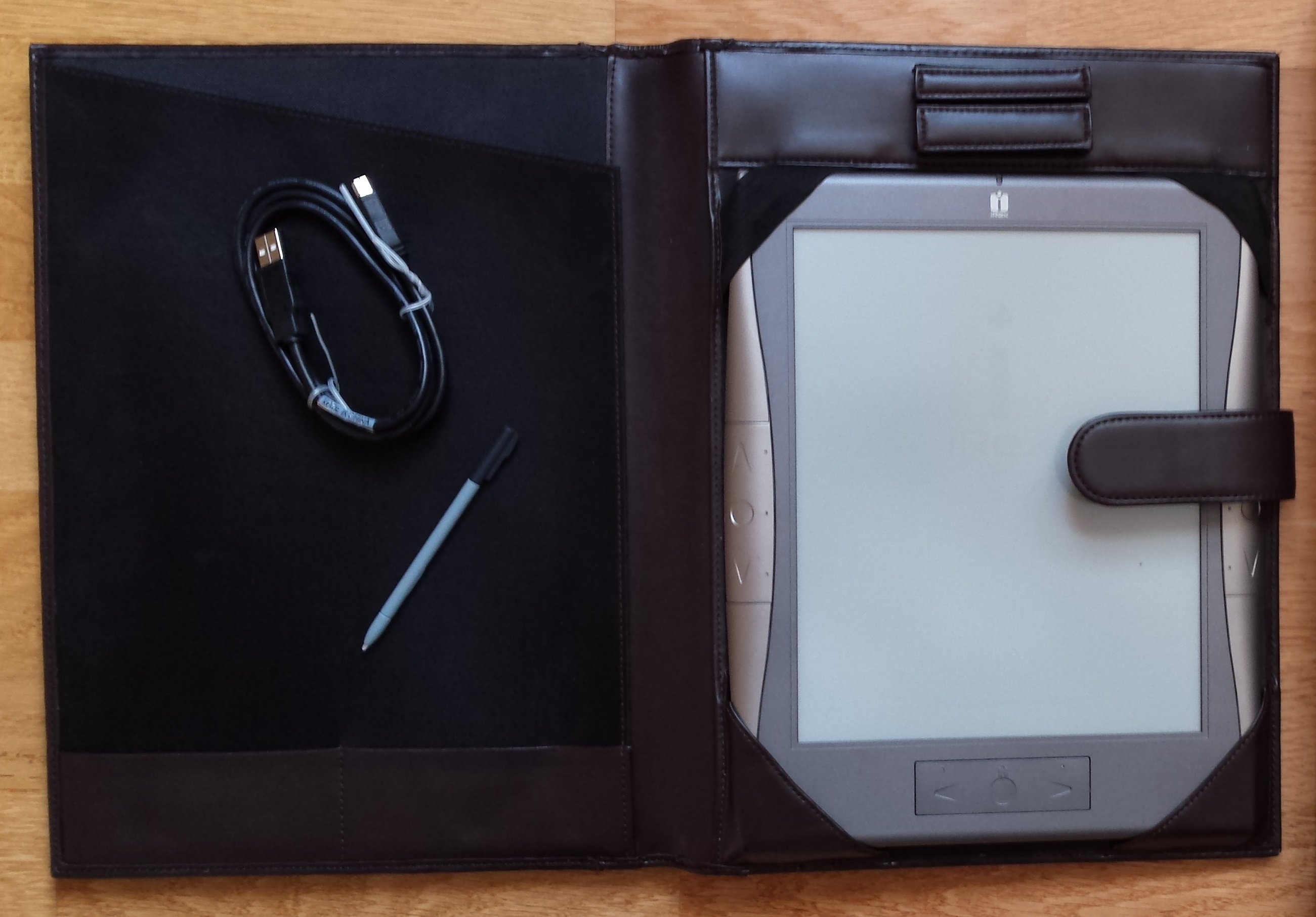 I used it mostly as a digital notebook, and it is fantastic for that purpose - but I don't need two of them. You can find specs and other info here: http://en.wikipedia.org/wiki/Digital_Reader_1000 and here: https://wiki.mobileread.com/wiki/Digital_Reader_Software Sale includes original faux leather cover, stylus, and USB cable (you can use any standard USB charger). Price: EUR 150 + shipping. PayPal or wire transfer. Last edited by Jmirko; 10-25-2014 at 03:23 AM. Reason: Item sold |