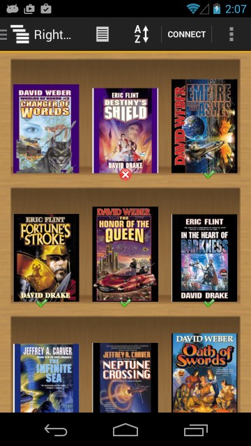 This also gives me another idea. What would you think about showing the read checkmark in cover view? You could put it in the corner of the cover. In a year of communication, I don't think you have been snarky even once, and yes, it is a lefty thing. |