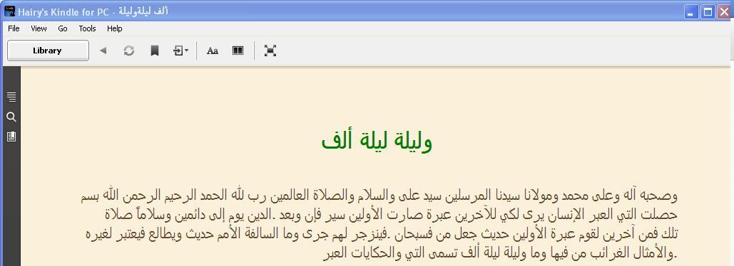 I am trying to use calibre to convert an Arabic text in html into mobi format. The conversion works perfectly for ebook format BUT the mobi conversion results in the sentences being shown backwards. Each word is correctly written, but the words appear left-to-right, not right-to-left. The large green text in the pictures below shows what I mean. The text in calibre.jpg reads correctly (alf layla wa-layla) The text in kindle.jpt reads backwards (wa-layla layla alf) !!! (this is the introduction to the 1001 nights) Does anyone have any suggestions for solving this problem? Thanks |