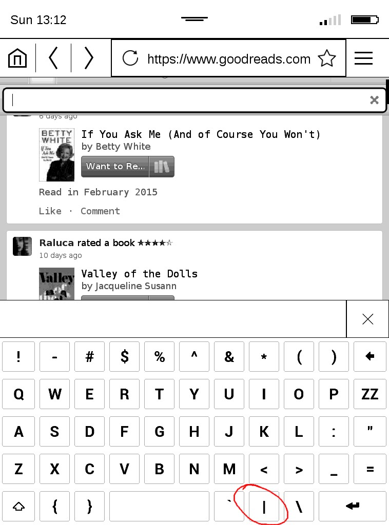 While trying to login @ goodreads I figured that there's no "|" on the keyboard so I couldn't type my password.