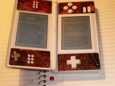 This review was recently posted, If you’ve got a DS Lite, you’ve got an e-reader and mentions all the things you need to get started reading ebooks on the Nintendo DS. There are many images showing the DS Lite being used as an ebook reader! A sample image is shown below.