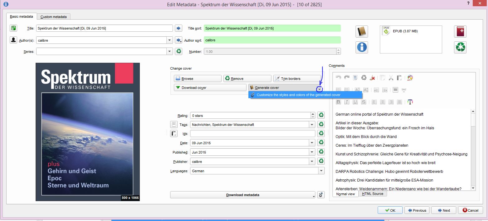 It's not a really serious problem, though -- it may be quicker to create my own cover images and include them with --cover %1.jpg than trying to find a solution to the "why don't the cover settings work?" question ![]() Thank's for all the help! |
