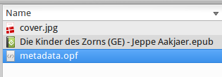 Sorting my library I found an author whose books are all without the usual metadata.opf files. What does that mean? I can read the books, also edit. Example with metadata.opf (other authors). Last edited by chaot; 06-24-2015 at 01:41 PM. Reason: [I]metadata.opf[/I] files |