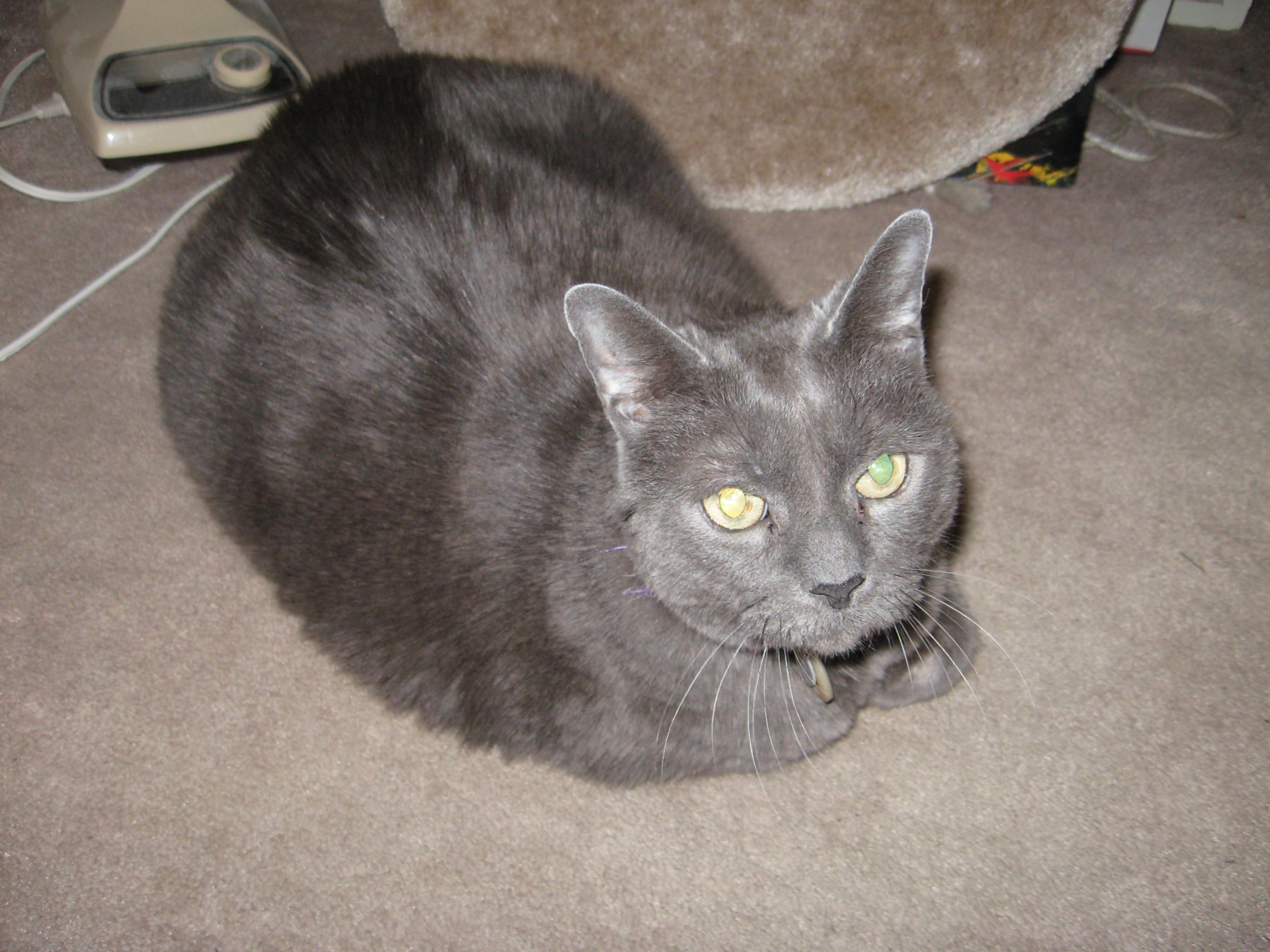 We thought she was a Russian Blue, too, until we saw some specs, looked closer, and realized she is a Korat (a Thai breed). They're apparently very close cousins to each other, somehow. And I don't know about Blues, but Chloe meowing sounds like Brenda Vaccaro back home from a party at 3AM!