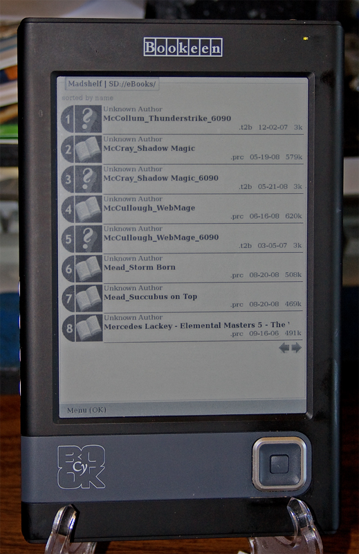 I notice that there is a lot of ghosting. So can you configure FBReader? And will the battery time be a problem for this version? I notice that Madshelf does not seem to reconize metainforation in mobipocket files. How do you "go forward" in madshelf? |