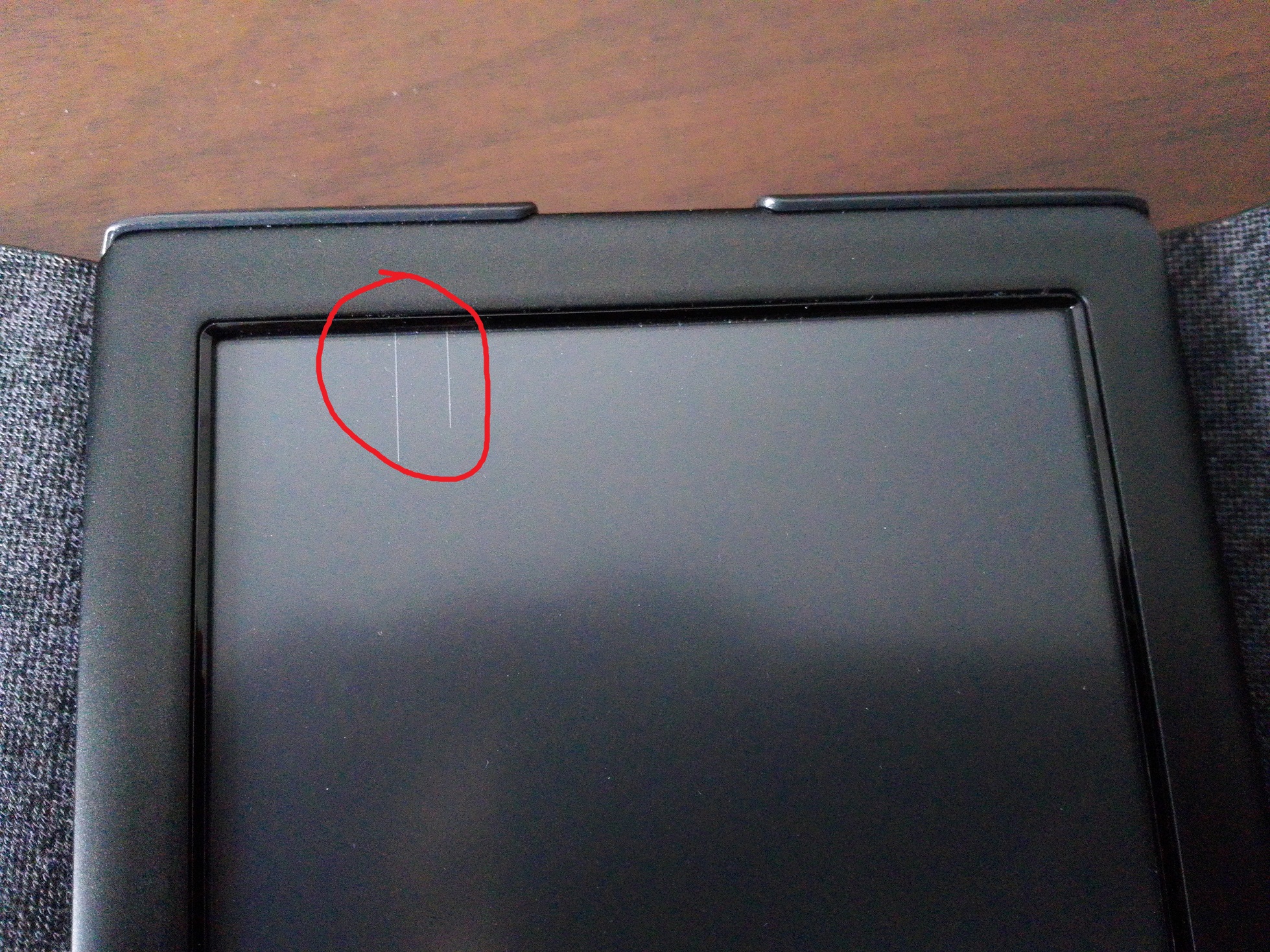 I have two lines down my screen in the e-ink on my GLO HD ,MY FRIEND ALSO HAS THE SAME PROBLEM. WHY THE SAME AS?