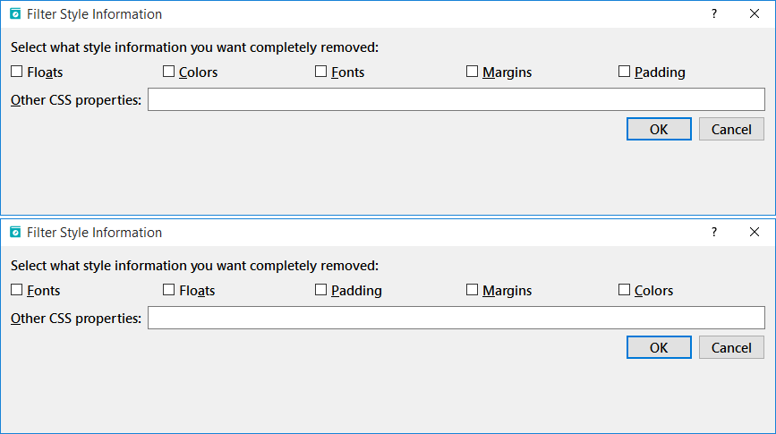 ![]() The order of the selections in the "Remove Style Information" dialog shifts around. Not a really big deal, but I sometimes find myself selecting the wrong option and only seeing that at the last second. Last edited by Katsunami; 09-27-2015 at 05:21 PM. |