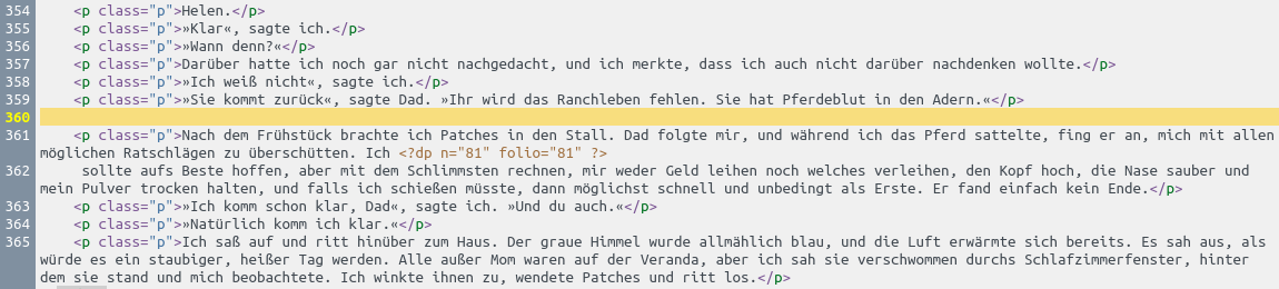 For inspection of the complete stylesheet see here. I just simplified the CSS properties margin-top and margin-bottom in some (selected) rows (63, 64 & 67, 68) to margin and set the value to zero. These seem me to be those that relate to the text. The distinction between top and bottom seems me now superfluous. Anyway, the result is at least OK. Book viewer (Optimized lines) So I think the book is readable (by design). I'm still quite young. ![]() Why did you set there a point in the code. Accidentally? I didn't. Code:
