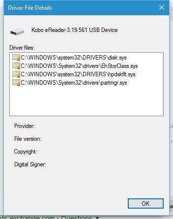 I did the deletion in USBDeview and then a shut down and power up. No dice. I tried the automount trick using diskpart which is active. There was a mention that a drive letter is not being assigned but it does seem to be assigning the letter (i .The properties shows that the device was set up for quick removal. I've changed this to best performance but it has not helped. I've attached the drivers shown associated with the drive in the image below. I've found that I can still use the device in Calibre by clicking the connect/share and connecting to folder so this is a nice band aid but still not finding a root cause / fix. Kind regards, Mike |