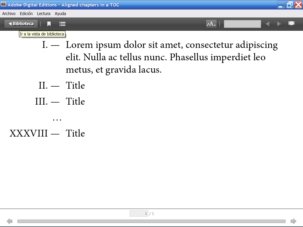 I have an HTML TOC that looks something like this: I. – Title II. – Title III. – Title IV. – Title … I'm trying to get the chapter numbers aligned by the endash as well as having the chapter title left aligned, if it wraps, after the endash. I have the chapter numbers in a span: Code: