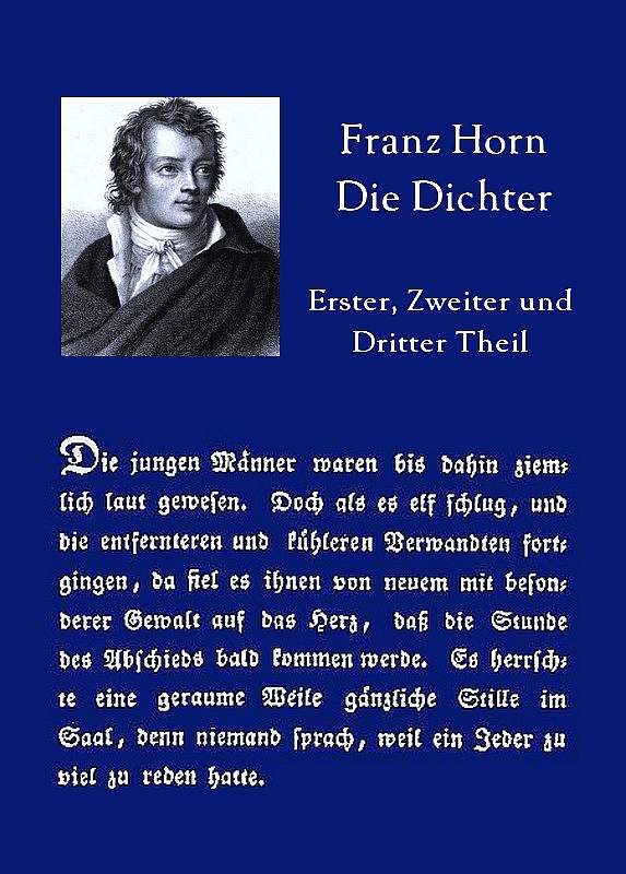 Franz (Christoph) Horn, Die Dichter (3 Bände. Berlin 1817/1818), Erster Theil (=Bd1), 1817, Zweiter Theil (=Bd2), 1817. Dritter und letzter Theil (=Bd3), 1818.