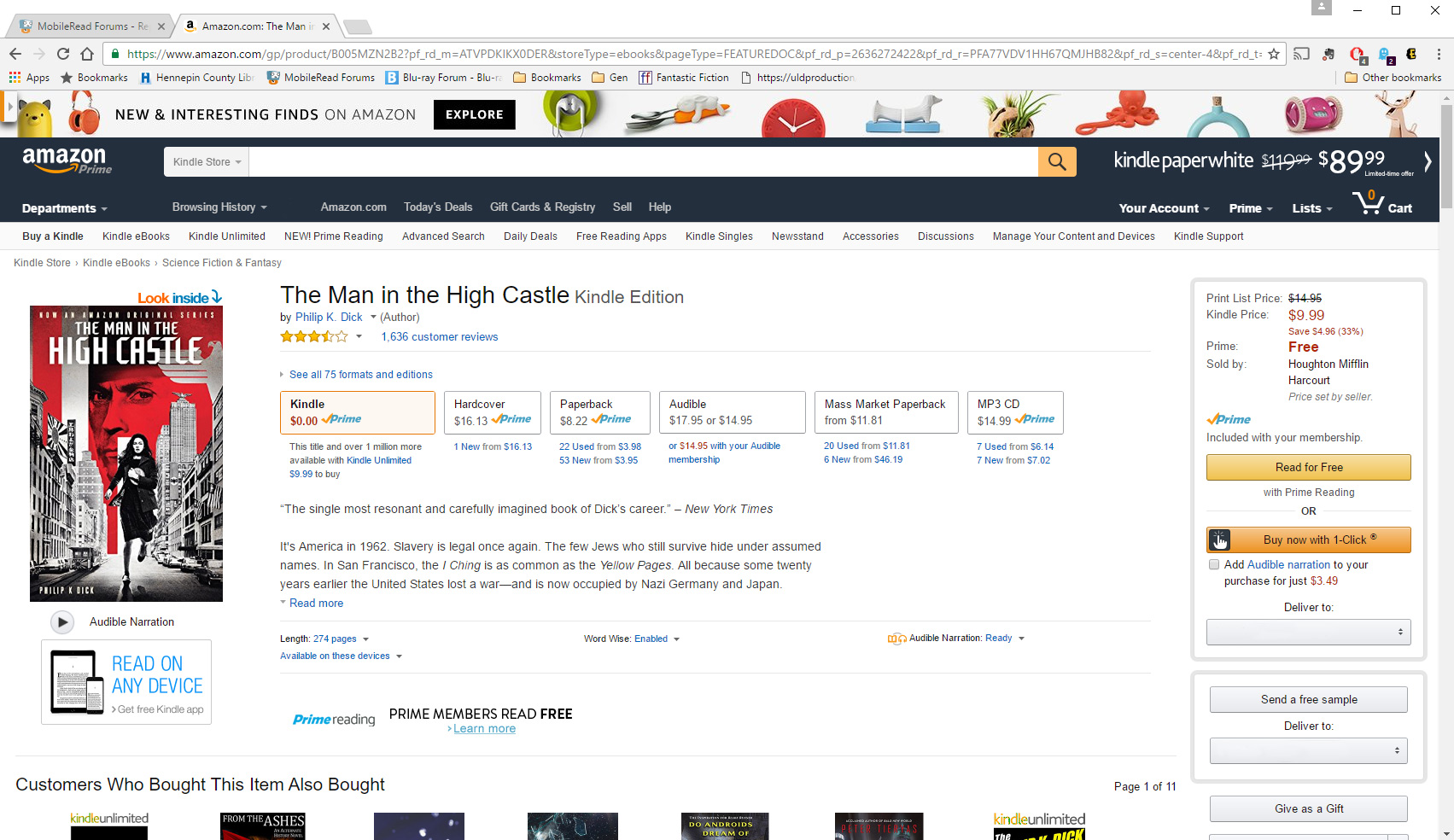 Also, is there a link of all the titles in Prime Reading? [Nevermind. I found the list.] Last edited by Fbone; 10-05-2016 at 01:56 PM. |