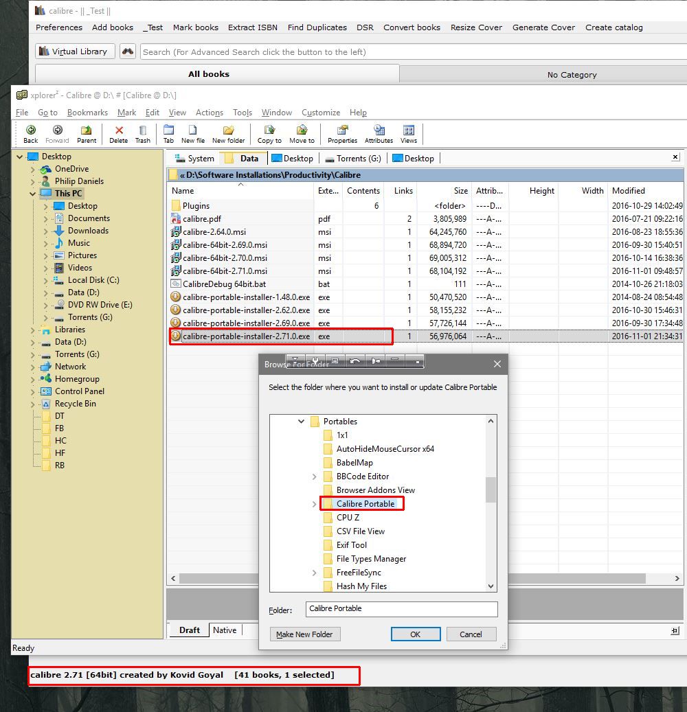 I don't know how many times I've installed portable, has to be a several hundred times (more times than the standard install) and I can't recall ever seeing that message. I must have unconsciously ensured calibre was closed every time. I know I do it consciously when I install a new 64 bit version, so somehow that discipline must have leaked over into installing portable. That I never made that mistake until yesterday will bother me for weeks Again my apologies. BR |