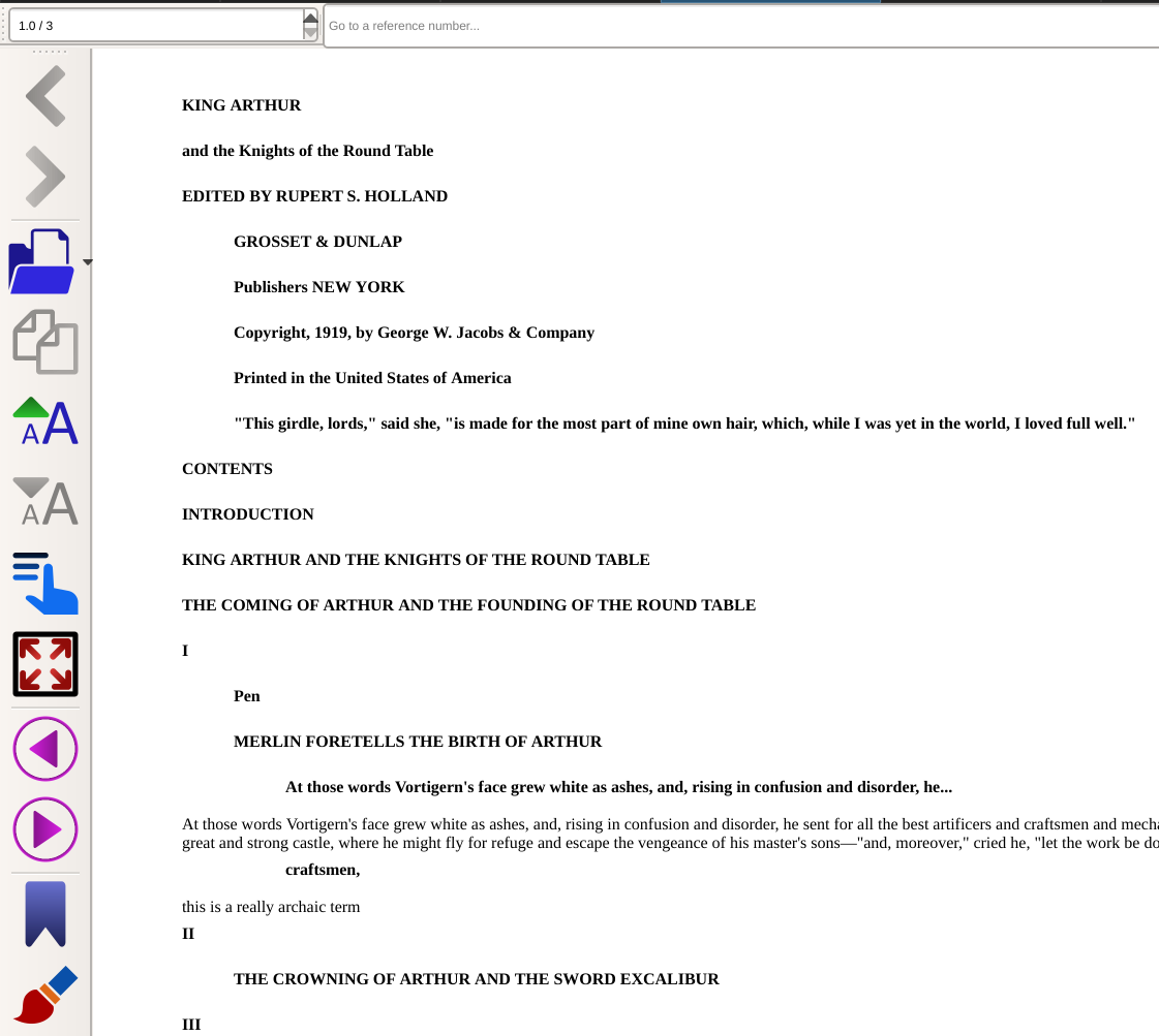 In the calibre book viewer, there are: 1. Pen -> indicate that I draw text annotation. In the ebook, I draw it between paragraph in [book -> chapter I -> Merlin Foretold ....], but in the html, it is just stored as there is drawing under [book -> chapter I ] before "Merlin foretold" 2. At those words vortigen .... Followed by same text unbolded -> Highlighted text only Looks like highlighted text is stored as which text being highlighted 3. Craftsmen Archaic term -> Typed note attached to highlighted text "Archaic term" is the text i typed myself. In the html, it is stored as what text being highlighted, and what text attached. The bmp is how it look like when you opened notes menu for the book. They are from the same part of the book as the one in calibre. Book -> Chapter 1 -> Merlin foretold.... |